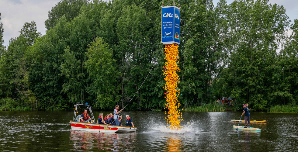 CELLE. Am vergangenen Samstag, den 8. Juni, kam es zur vierten Auflage des Celler Entenrennens. Beim Benefizevent zu Gunsten des Onkologischen Forums Celle e. V. und unter Schirmherrschaft von Oberbürgermeister Jörg Nigge strömten bei herrlichem Sommerwetter ab 11.00 Uhr knapp 1000 Besucherinnen und Besucher auf die Celler Ziegeninsel, das Vereinsgelände des Celler Rudervereins.