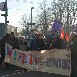 Rückendeckung, die dem Vorsitzenden des Netzwerkes Südheide, Pastor Wilfried Manneke, Auftrieb geben könnte. Denn in seiner Rede vor rund 120 bis 130 Demonstranten, die sich am Samstagmittag vor dem Escheder Bahnhof eingefunden hatten, um „Flagge zu zeigen gegen Rechts trotz Minusgraden“, lag etwas Resignatives. „Wir sind mit unseren Protesten leider keinen Schritt vorangekommen“, sagte er vor dem Hintergrund, dass von Seiten der Landespolitik bisher keine Hilfestellung kam.