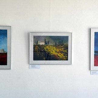 Die zahlreich zur Vernissage erschienenen Gäste sind beeindruckt von den Werken, manche verharren lange bei einer Station, schauen sehr genau hin, während der Großteil der Gruppe sich bereits im nächsten Stockwerk befindet, wo es wieder etwas zu lernen gibt über Techniken. Gabriele Stuntebeck ist sehr eloquent, selbstbewusst berichtet sie von ihrem Weg zur künstlerischen Betätigung und erläutert gleichsam aus Sicht eines Neulings, worauf es ankommt, wenn man eine leere Leinwand vor sich hat. Immer wieder fallen zwischendurch die ganz großen Namen der Kunstwelt – Picasso, Rothko, Matisse, Giacometti. Die pensionierte Lehrerin hat Anleihen genommen. „Hommage an Rothko“ lautet denn auch der Titel eines Bildes.