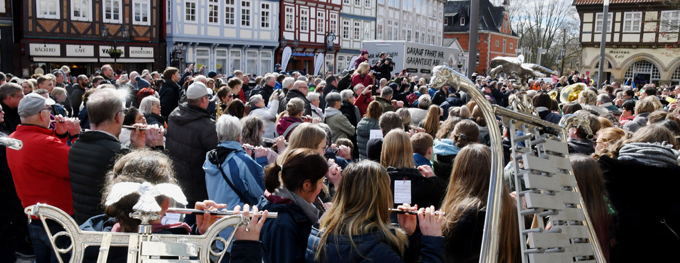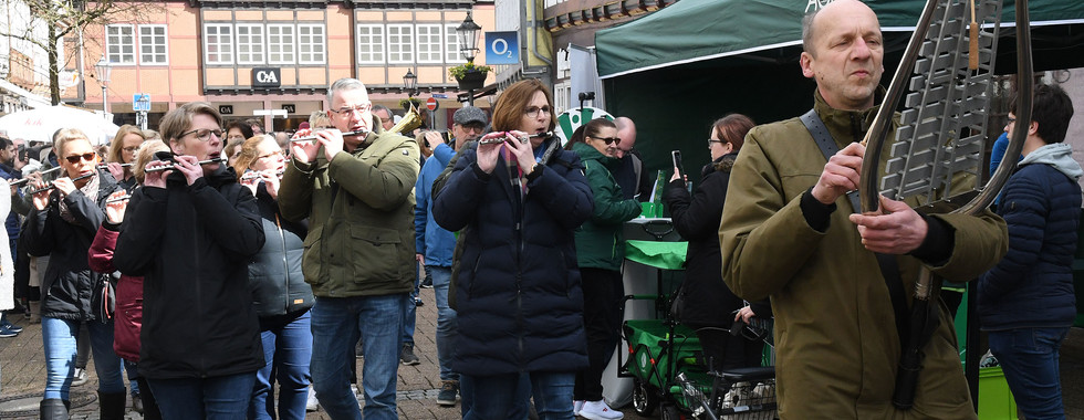 Immer mehr MusikerInnen der "Fachgruppe Musik des Kreisschützenverbandes Celle", zu denen 21 Spielmanns-, Fanfaren- und Musikzüge angehören, schließen sich den Klängen an, insgesamt rund 200. Am heutigen Sonntag bestehen sie aus 15 Spielzügen. Vorfreude und Aufregung mischten sich bei allen Teilnehmern und vor allem bei Kreismusikleiter Lutz Kleineberg: "Trainieren kann man so etwas im Vorfeld natürlich nicht, und wir haben nur diesen einen einzigen Versuch – also auch irgendwo ein Experiment." Ein gelungenes Experiment, das wahrscheinlich Geschichte schrieb: "Wir Musiker glauben, dass es einen solch gewaltig großen musikalischen Flashmob im Raum Norddeutschland so noch nicht gegeben haben dürfte, zumindest ist uns davon nichts bekannt", so Kleineberg. Diese "Fachgruppe" sei im Rahmen der Schützenorganisation des Landes Niedersachsen jedenfalls die größte Ihrer Art.