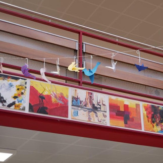 CELLE. Mit verschiedenen Friedensaktionen thematisiert auch die Oberschule an der Welfenallee in Celle den Krieg in der Ukraine. In der Schule hängen Friedensmotive und Banner aus, unter anderem auch Origami-Kraniche, die unter Anleitung einer Lehrkraft von einem Kurs erstellt wurden.