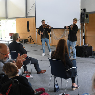 Überhaupt standen nicht nur in den Redebeiträgen die Menschen mit Beeinträchtigung im Mittelpunkt. Viele LeistungsnehmerInnen hatten sich für die Veranstaltung angemeldet, um Abschied von Dr. Kasper zu nehmen, dessen Tür für ihre Wünsche, Sorgen und Belange jederzeit offenstand. Dass dieser sich vor allem im Bereich Mitwirkung immer für die Rechte der Menschen mit Beeinträchtigung stark gemacht hatte, bestätigten auch die Frauenbeauftragte Aynur Berse sowie die beiden Vorsitzenden vom Werkstatt-Rat, Matthias Worthmann und Claus-Peter Dümeland, in ihrem jeweiligen Redebeitrag. Zum Abschluss überraschte Dr. Kasper dann alle noch mit seinem musikalischen Können und packte kurzerhand die Drehleier aus. Nach Schuberts „Der Leiermann“ gab er seinem Nachfolger, Nico Lauerwald, mit einem Augenzwinkern noch ein Stück mit dem treffenden Titel „Power of Morning“ mit. Ab dem 1. Juli 2022 wird Nico Lauerwald dann der alleinige Geschäftsführer der Lebenshilfe Celle sein.