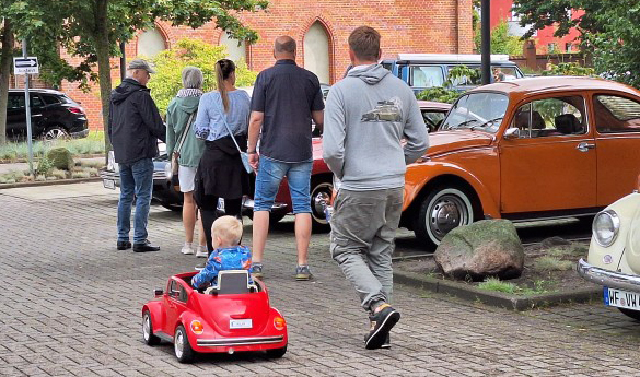 Gut 350 VW Käfer, "Bulli"-Transporter, Karmann-Ghia und VW-Porsche aus Nah und Fern wurden rund um das Neue Rathaus geparkt - und waren das Ziel so manchen Sonntagsspaziergangs der Celler und auswärtiger Besucher. Die Kennzeichen der Autos verrieten, dass ihre Besitzer auch aus Süddeutschland und sogar aus Norwegen zu diesem Termin angereist waren. Da hatte wohl auch Petrus ein Einsehen: Nach morgendlichem Regen zeigte sich pünktlich zum Beginn des Käfertreffens die Sonne, was auch Anteil am Publikumserfolg der Veranstaltung gehabt haben dürfte. Rund 35 Vereinsmitglieder des Käfer-Clubs Celle sorgten mit ihrem Einsatz für gute Organisation und schmackhafte Verpflegung. Und falls die Kinder der Autofans das Interesse an den bunten alten Autos verloren, sorgte sogar eine Hüpfburg für Abwechslung.