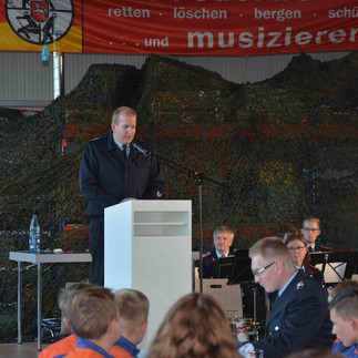 Der Musikzug unter der Leitung von Markus Thiele sorgte für die musikalische Untermalung, und Gemeindebrandmeister Michael Haming stand van der Ahe zur Seite, als es darum ging, den Dank des Landes Niedersachsen im Namen des Innenministers Boris Pistorius auszusprechen und den Ringtausch zu erläutern. Eine Besonderheit wurde zu Tage befördert im Zuge der Vorstellung der neuen Fahrzeuge. „Wir benötigen zwei Mannschaftstransportwagen, denn wir verfügen über einen der größten Musikzüge im ganzen Landkreis Celle“, erläuterte van der Ahe. Auch die Jugendfeuerwehr ist mit 20 Kindern und Jugendlichen gut aufgestellt. Und alle müssen zu den zu absolvierenden Veranstaltungen transportiert werden. Und dieses geschieht mittels der neuen MTW.