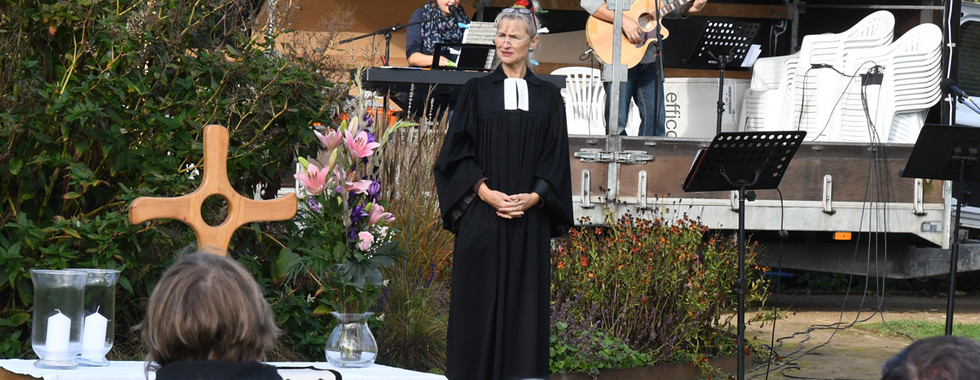 CELLE. Heute luden die Kirchen im Landkreis zum Erntedank-Gottesdienst ein. Die Kreuzkirchengemeinde und die Neuenhäuser Kirchengemeinde wagten sich nach draußen in die Celler Trift-Anlagen - "bei jedem Wetter", wie es hieß. Belohnt wurde dieser Glaube mit Sonnenschein. Hannah Schäfer (E-Piano, Gesang) und Florian Hempel (Gitarre, Gesang) begleiteten die Kirchenlieder und den Gottesdienst, gestaltet von Pastorin Carola Beuermann und Pastor Lars Röser-Israel.