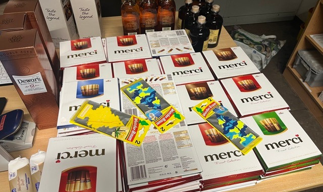 Im Fahrzeug waren laut Polizei 170 Packungen "Merci"-Schokolade, 250 Packungen Kaffee, 70 Flaschen Alkoholika, zwei Kaffeeautomaten sowie ca. 70 Flaschen Head & Shoulders, für die die beiden Männer keine plausible Herkunftserklärung abgeben konnten.