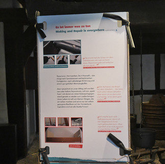 Das Bomann-Museum zeigt die Wanderausstellung in den Räumen der Dauerausstellung „Rauch, Gestank und Plackerei – Das Bauernhaus“. Diese Intervention gibt Denkanstöße, das eigene Konsumverhalten zu hinterfragen sowie die uralte Kultur des Reparierens, Flickens und Umnutzens wiederzuentdecken und für die Zukunft neu zu interpretieren. Besucher und Besucherinnen begegnen dabei der Emotionalen Bindung von Menschen an Gegenständen, der Schwarmintelligenz beim Reparieren, Gemeinschaft und Kreativität bei der Umnutzung von Dingen und Werkzeugen. Durch die Information, Zitate, Bilder und Mitmach-Stationen der Ausstellung wird Lust geweckt, Dinge nicht mehr direkt wegzuwerfen. Man möchte an ihrer Reparatur tüfteln, die eigenen Fähigkeiten testen und ganz nebenbei der Umwelt etwas Gutes tun. Die Ausstellung findet statt in Kooperation mit der Technischen Universität Berlin, Zentrum Technik und Gesellschaft.