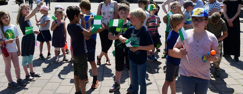 Auf der Strecke wurde die Fackel untereinander weitergetragen - wärmen musste sie jedenfalls nicht, bei diesem Wetter wurden viele Trinkpausen eingelegt. Zeitgleich warteten bereits die Celler auf die Ankunft der Athleten mit einem Familienfest vor dem Schloss, u.a. mit beeindruckenden Seifenblasen, dem Zirkus Knalltüte und vielen weiteren Angeboten für Kinder.