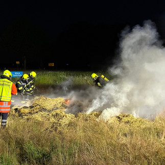 Durch das schnelle Handeln der Einsatzkräfte konnte eine Ausbreitung auf weitere Strohballen sowie die umliegende Vegetation erfolgreich verhindert werden. Im weiteren Einsatzverlauf wurde der Strohballen mit einigen Dunghaken auseinander gezogen, um verbleibende Glutnester ablöschen zu können. Hierbei kam ein Trupp unter Atemschutz zum Einsatz.